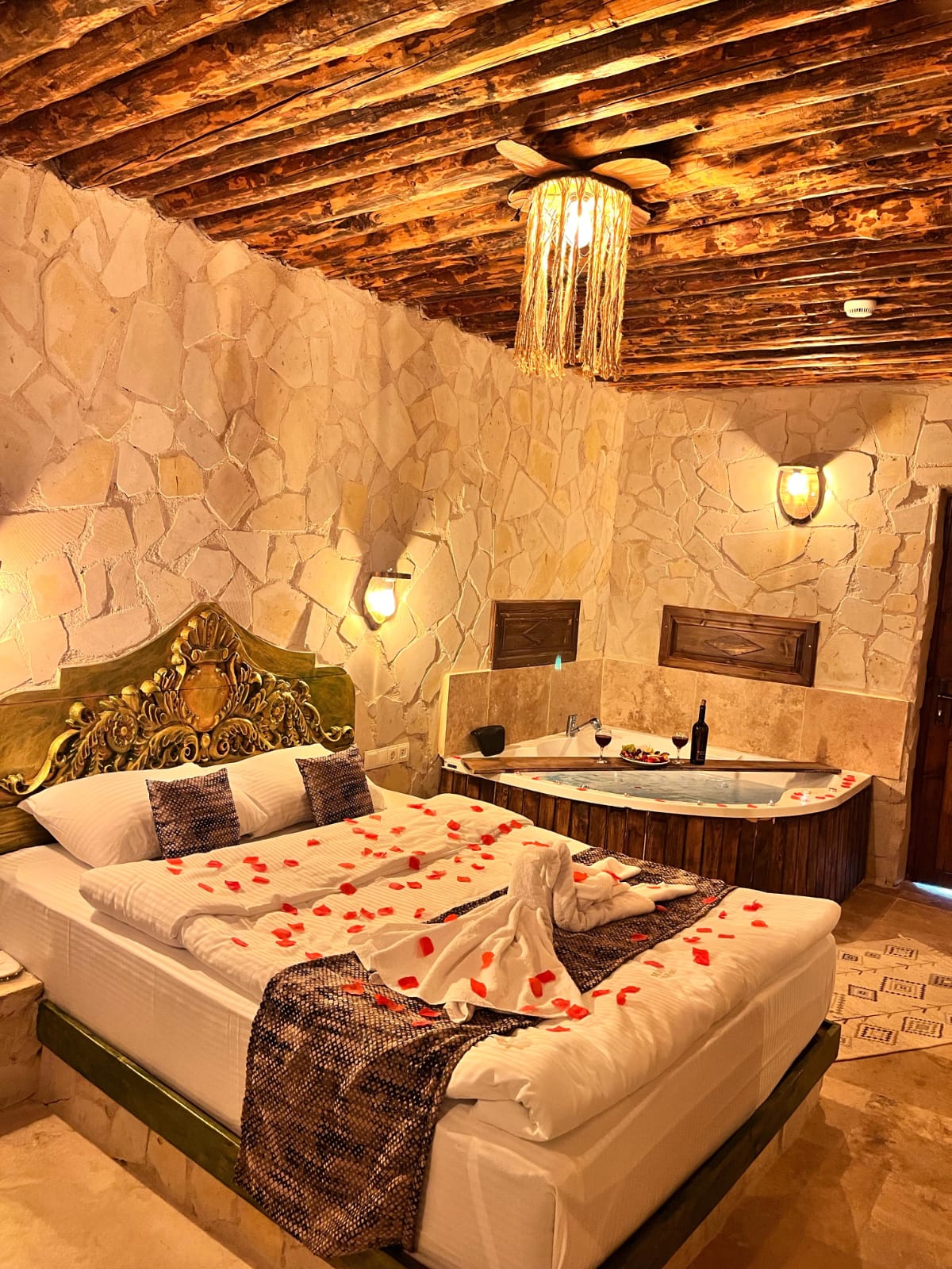 Kapadokya’da manzaralı, sakin ve ayrıcalıklı bir konaklama deneyimi için 303 Deluxe Jakuzili Balkonlu Oda sizleri bekliyor.
