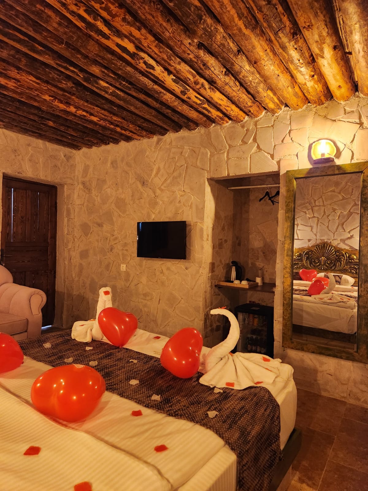Kapadokya’nın eşsiz manzarasını özel balkonunuzdan izleyebileceğiniz 302 Selene Deluxe Jakuzili Balkonlu Oda, konfor ve ayrıcalığı bir araya getirir. Taş ve kemer mimarisinin zarif dokusu ile tasarlanan bu özel oda, ferah yapısı ve içerisinde yer alan jakuzi ile hem dinlenmek hem de keyifli anlar yaşamak için ideal bir ortam sunar. Gün batımını balkonunuzdan izlerken Kapadokya’nın büyüsünü doyasıya hissedersiniz.
